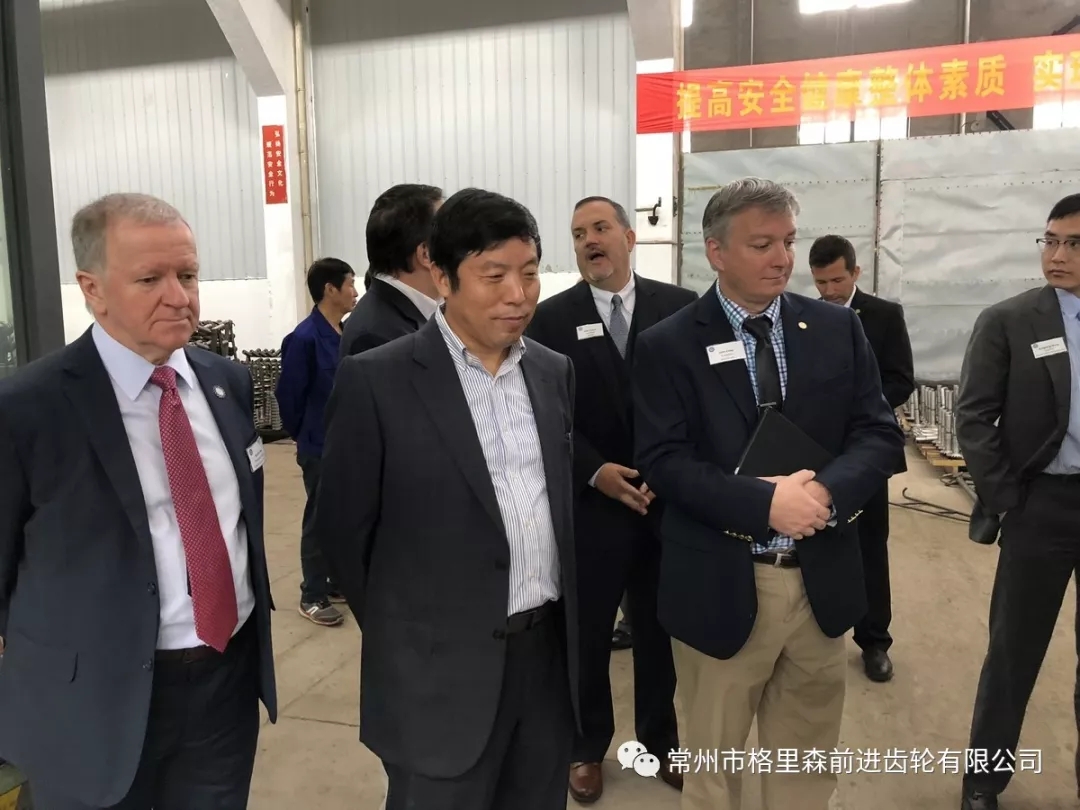 2018年10月25日,在AGMA(美國齒輪制造業(yè)協(xié)會)主席Matthew E. Croson的帶領(lǐng)下,Doppler Gear總裁 James Bregi、Gear Motions總裁 Dean Burrows等一行10人蒞臨格里森前進齒輪調(diào)研指導。格里森前進齒輪總經(jīng)理王仁方、副總錢益華、生產(chǎn)部長王衛(wèi)法、銷售部長吳志峰等熱情接待了來訪領(lǐng)導以及同行。