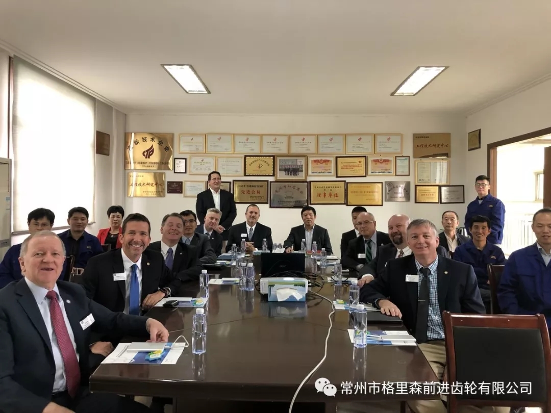 2018年10月25日,在AGMA(美國齒輪制造業(yè)協(xié)會)主席Matthew E. Croson的帶領(lǐng)下,Doppler Gear總裁 James Bregi、Gear Motions總裁 Dean Burrows等一行10人蒞臨格里森前進齒輪調(diào)研指導。格里森前進齒輪總經(jīng)理王仁方、副總錢益華、生產(chǎn)部長王衛(wèi)法、銷售部長吳志峰等熱情接待了來訪領(lǐng)導以及同行。